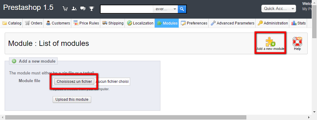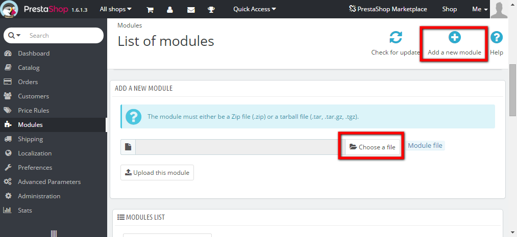 From the modules administration menu, add, select, download the current module from the following location: http://download.luckycart.com/integration/prestashop/psluckycart.zip