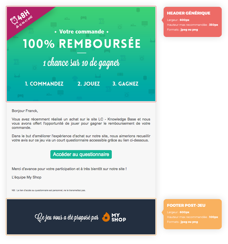 Vous devez nous fournir 2 éléments qui seront utilisés pour l’habillage de cet email :